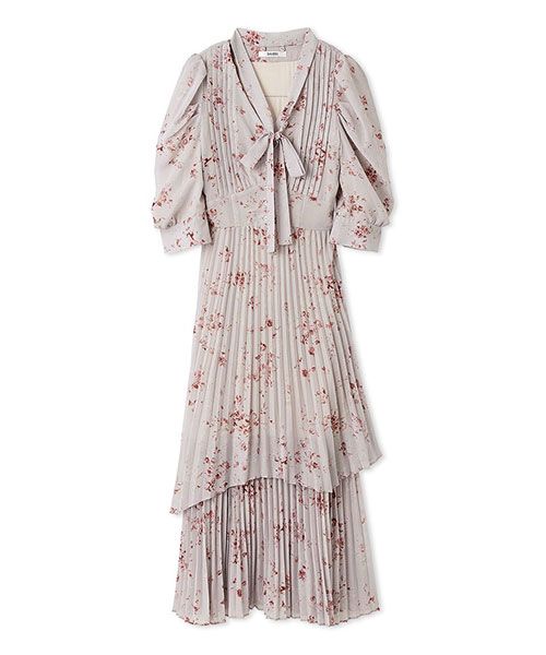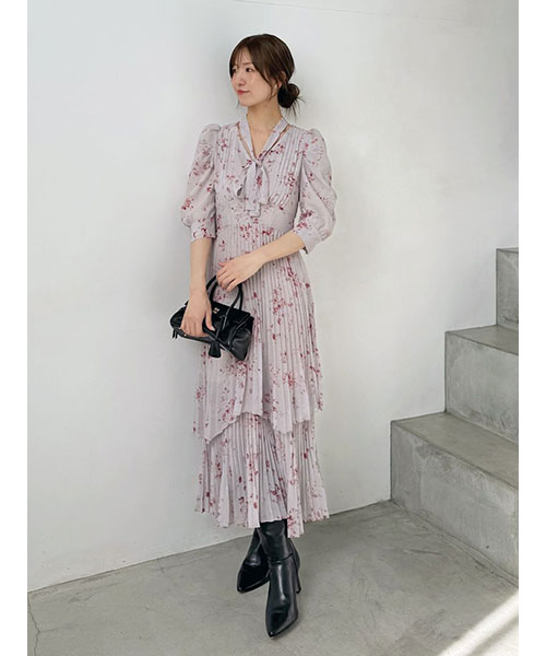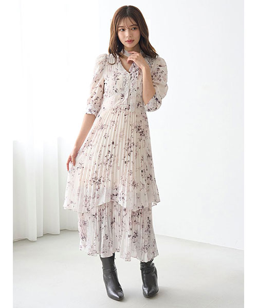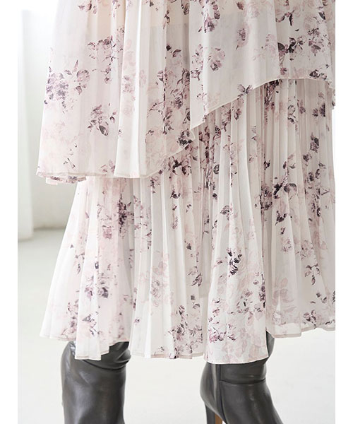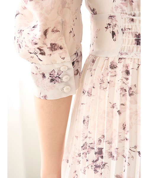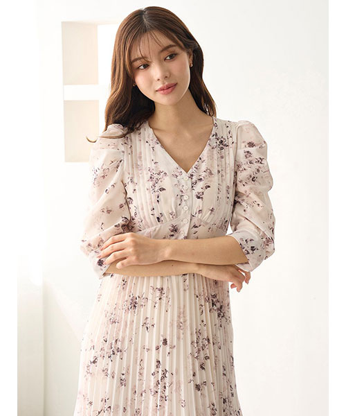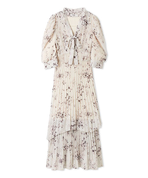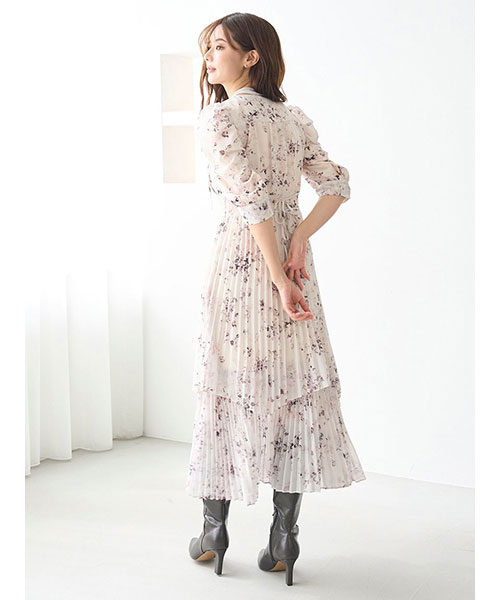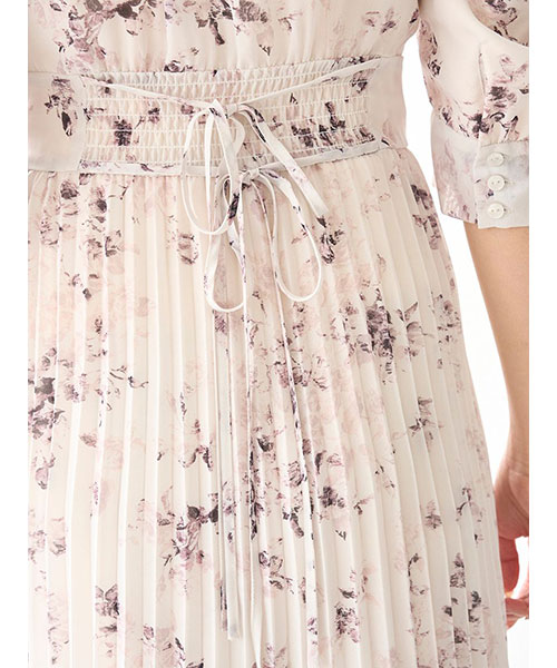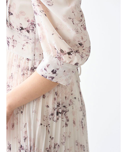 【サステナ素材を使用!ロマンティックな薔薇モチーフのプリーツシフォンワンピース】【Design/Styling】