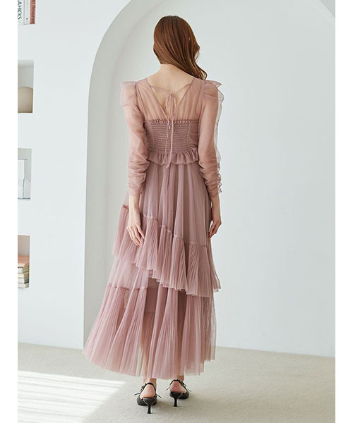 【繊細で柔らかなシアーをふんだんに使用したゴージャスな大人のティアードチュールドレス】【Design/Styling】