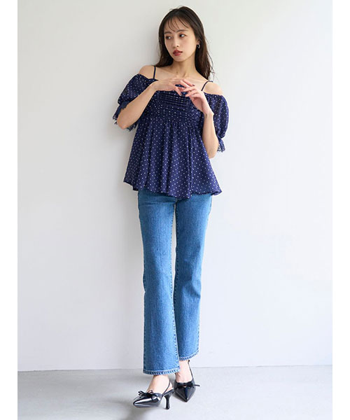 ブルー1色展開です。サイズは23、24、25、26にてお作りしております。(股下29inch SWFP254071もご用意ございます)