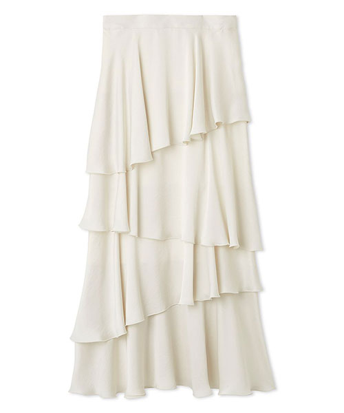 【空気を纏って軽やかな動きをプラスするサテンナローティアードスカート】【Design/Styling】