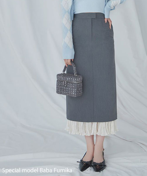 【裾からのぞくプリーツオーガンジー生地が華やかな今季らしいプリーツドッキングナロースカート】【Design/Styling】