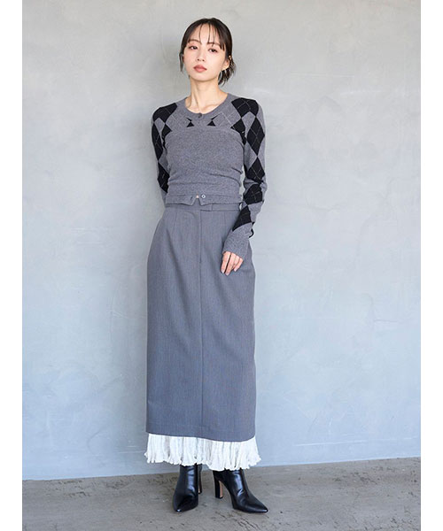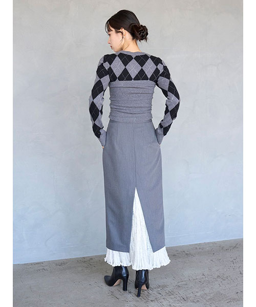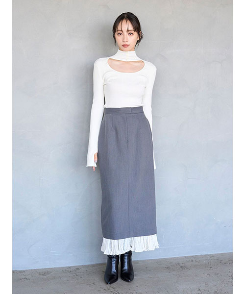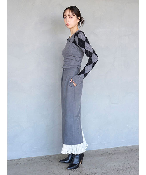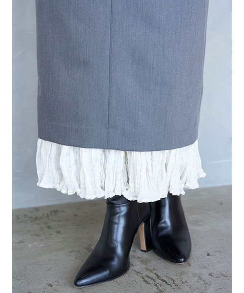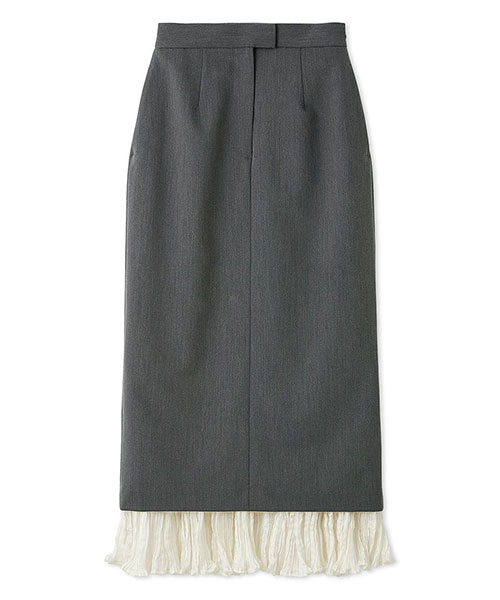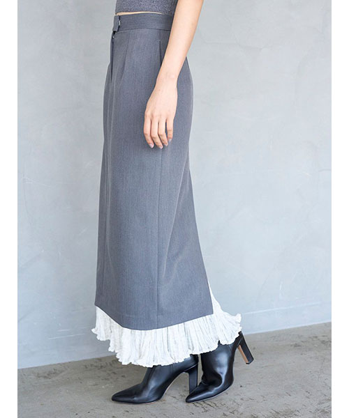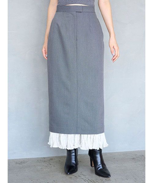 【裾からのぞくプリーツオーガンジー生地が華やかな今季らしいプリーツドッキングナロースカート】【Design/Styling】