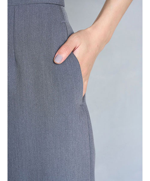 | 素材 | 表地:【GRY・BLK】ポリエステル79%、レーヨン15%、ポリウレタン6% 【STRIPE】ポリエステル75%、レーヨン19%、ポリウレタン6% プリーツ部分:ポリエステル100% 裏地:ポリエステル100% |