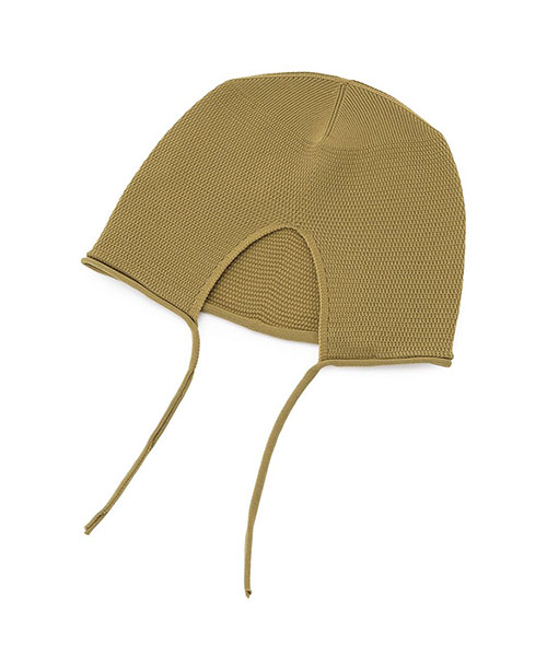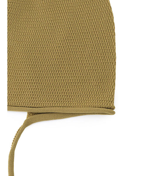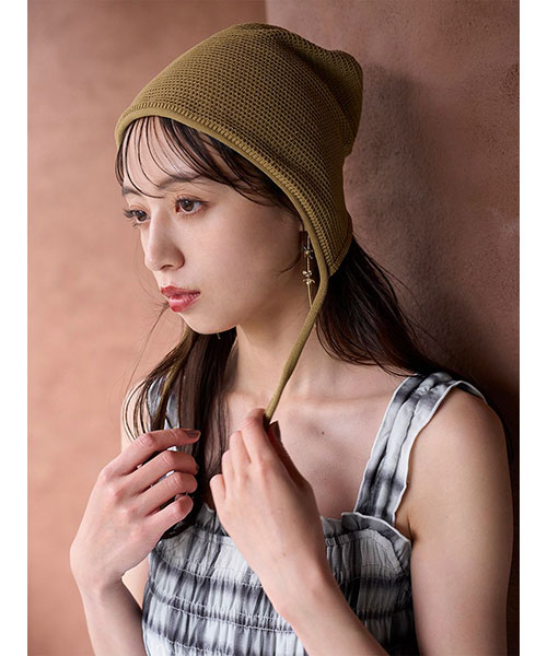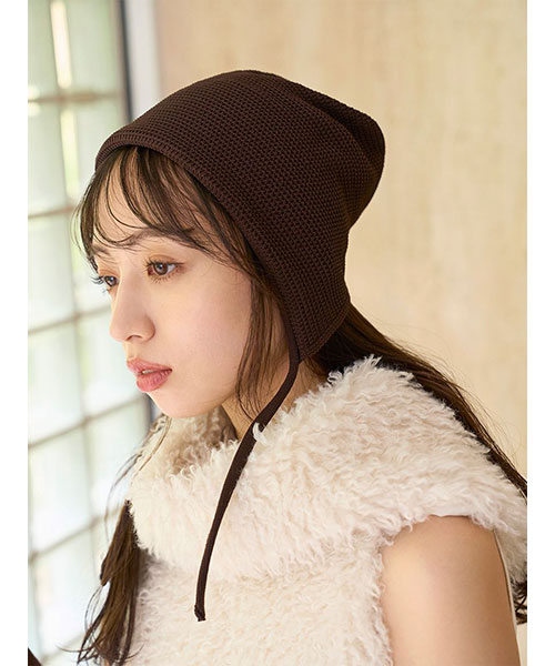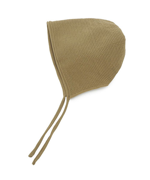 コーディネートにプラスするだけでトレンド感を演出するクロシェボンネットがお目見え。顔周りに優しくフィットするデザインで、小顔効果も抜群。ざっくりとしたワッフル編みのような立体感のある編み地が愛らしさをプラスします。あご紐付きで、可憐な表情に。防寒アイテムとしても重宝します。オリーブとブラウンの2色展開です。