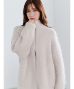もちもちとした柔らかな手触りと優しい色味が魅力的なアルパカシャギージップコートがお目見え。毛足の長いファブリックを使用し、ドロップショルダーでゆったりとしたフォルムでお作りした1枚です。お尻がしっかり隠れる少し長めの着丈で温かみのあるデザインに。ミントやピンクのパステル調の明るいカラーが、秋冬コーデを明るく演出します。カジュアルなスウェットパンツやキレイめワンピースとも相性抜群。ダブルジップでスタイリングの幅も広がります。左右にポケットが付いています。