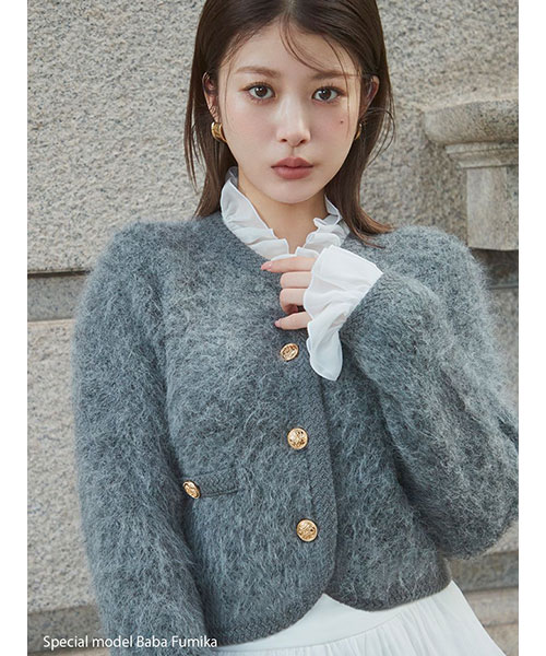 【上品なフリル衿と最新起毛技術でふんわり仕上げた編地が新しい毎年大人気のニットジャケット】【Design/Styling】
