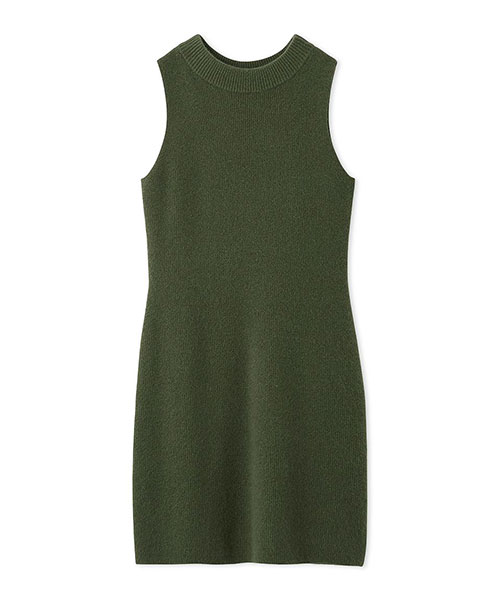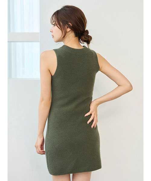 ラクーンとウールを使用した肌触りの良い柔らかなニット生地でお作りした、シンプルなノースリミニワンピースが登場。秋冬気分が高まるシックな色味で揃いました。肉厚で立体感のある畦編みで、カーヴィーなラインで身体に程よく寄り添いながらもタイトすぎないシルエットで着やすくお作りしています。アメスリ風のノースリでスタイリングに抜け感を出し、華奢見え効果も。シャツやブラウスを重ねたり、同色同素材でお作りしているラクーンショートカーディガン(SWNT255012)とのセットコーディネートもおすすめです。