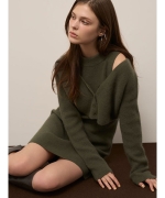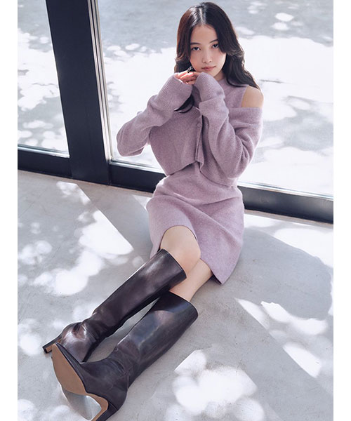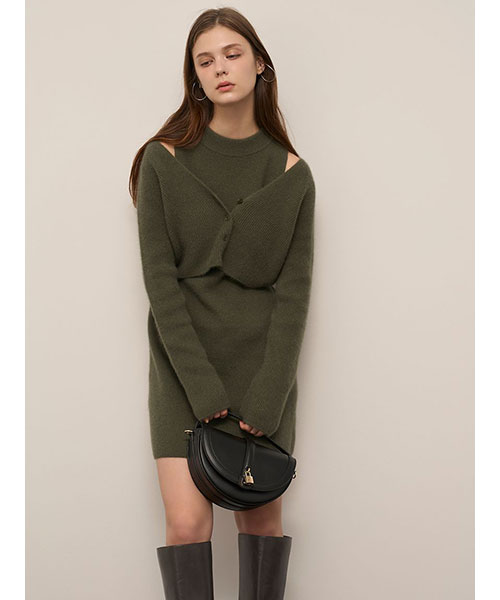 【ラクーン混の柔らかで温かみのあるニット生地でお作りした秋冬気分を高めるノースリミニワンピース】【Design/Styling】