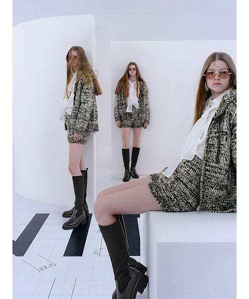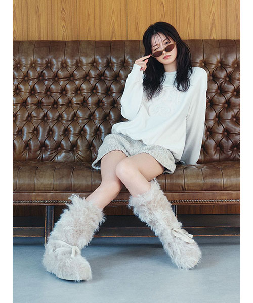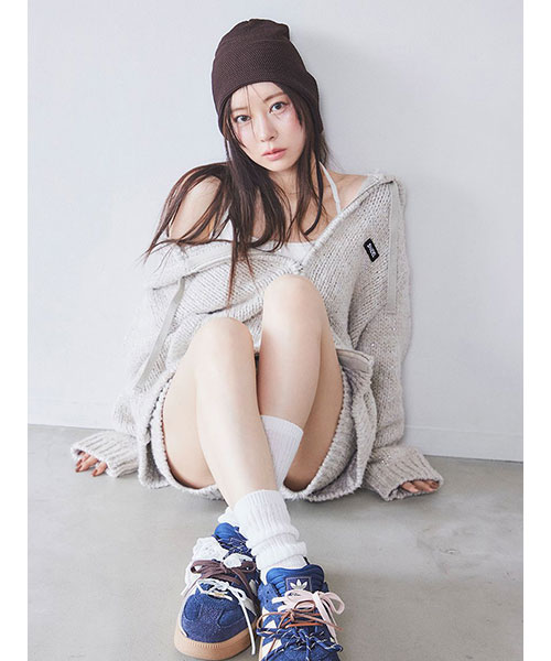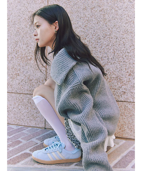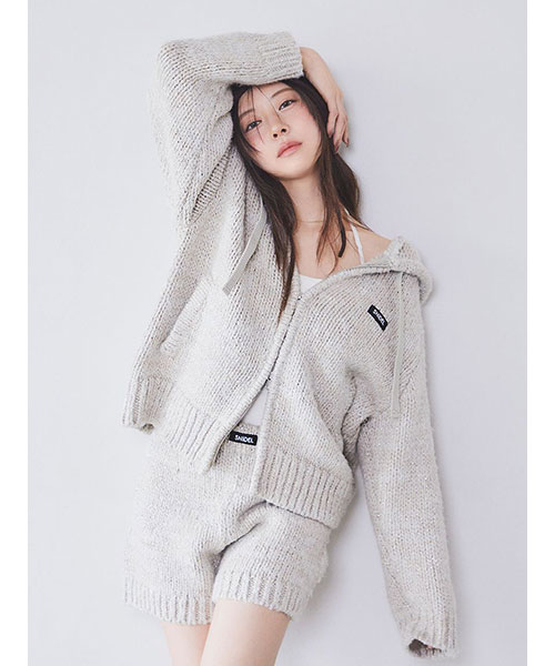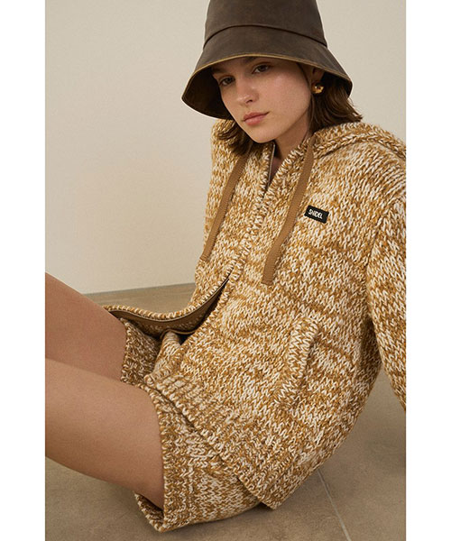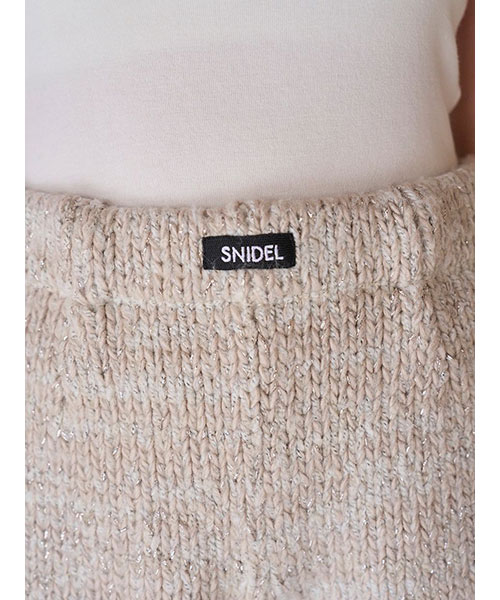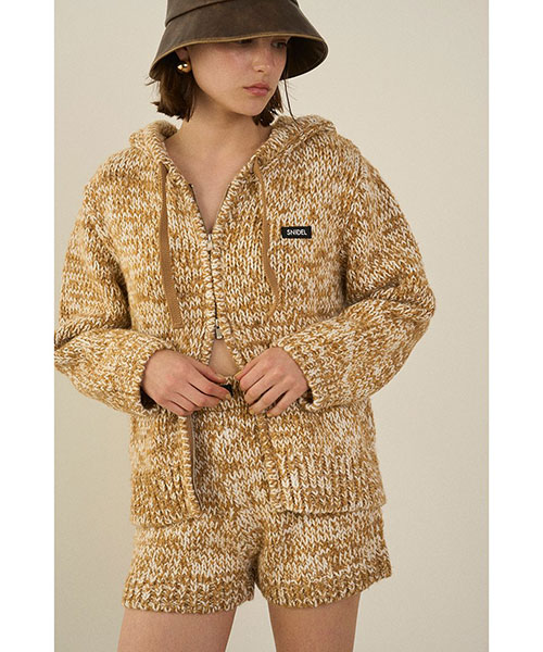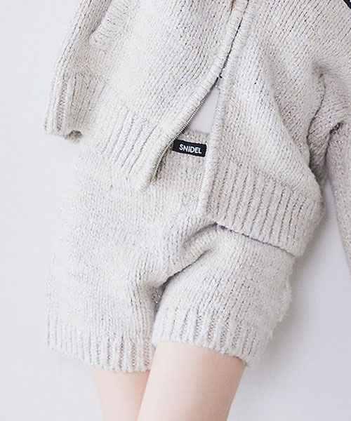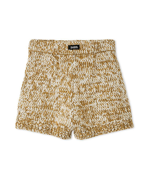 2種類・3色のロービング糸を組み合わせてメランジを表現した、ふっくらとした編み地でカジュアルにお作りしているニットショーパンがお目見え。カラーによってラメ糸を織り交ぜているので、さりげなくキラキラとしているのも特徴です。ウエストはゴムでストレスフリーな着心地に。厚みのある素材感ですが、ダーツを入れ、腰回りはすっきりさせるひと工夫も。カジュアルなスウェットやオーバーサイズのトップスとのコーディネートがおすすめ。パーカー(SWNT252451)とお揃いのSNIDELネームをフロントにあしらい、品よく仕上げました。セットアップでご着用いただけます。