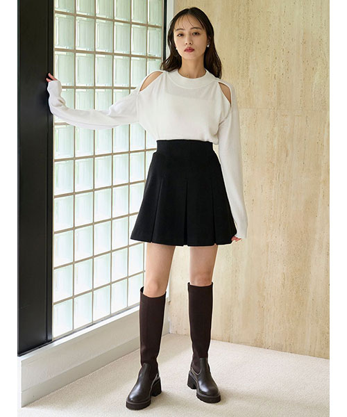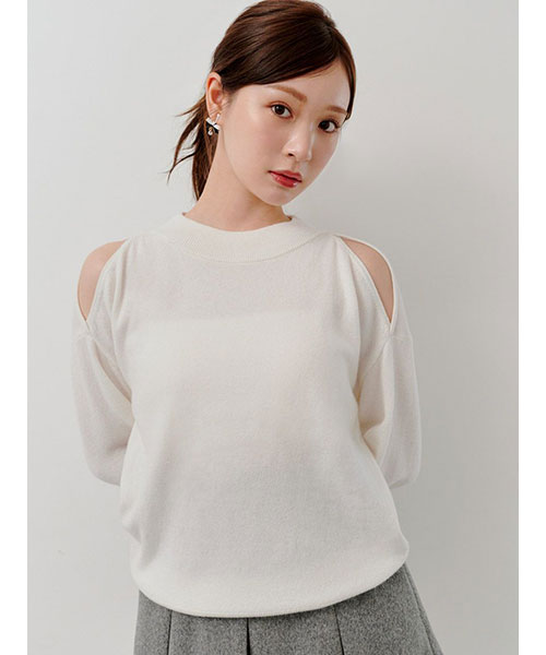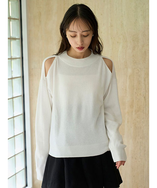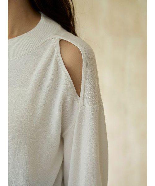 【さり気ない抜け感で胸元が映えるコールドショルダーニットプルオーバー】【Design/Styling】