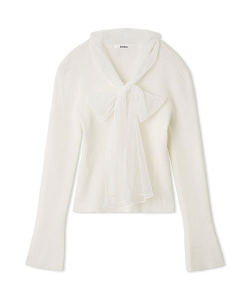 【ふんわりボウタイチュールリボンをドッキングした着回し力抜群なニットプルオーバー】【Design/Styling】