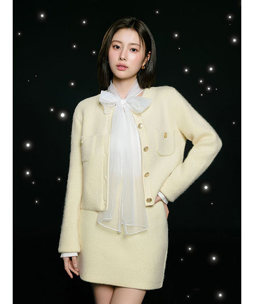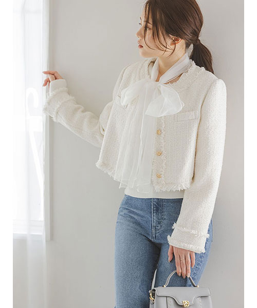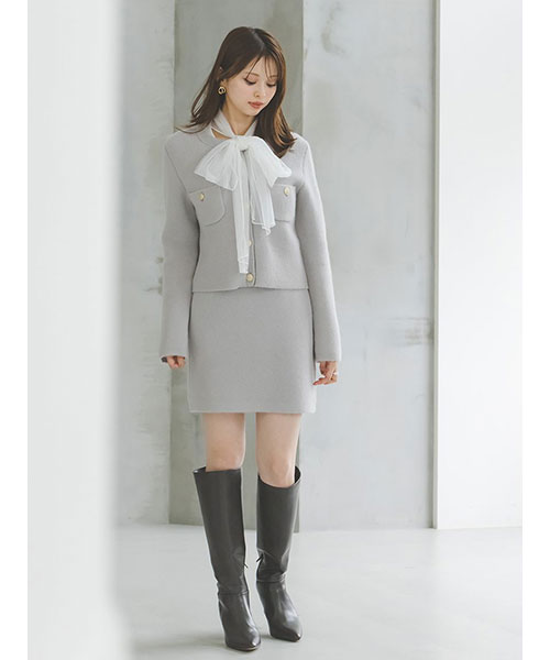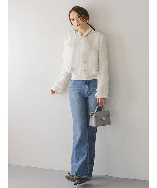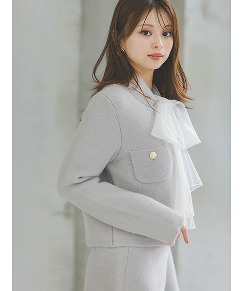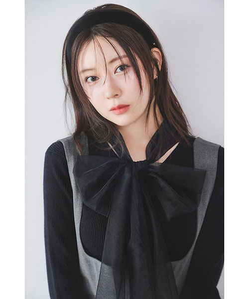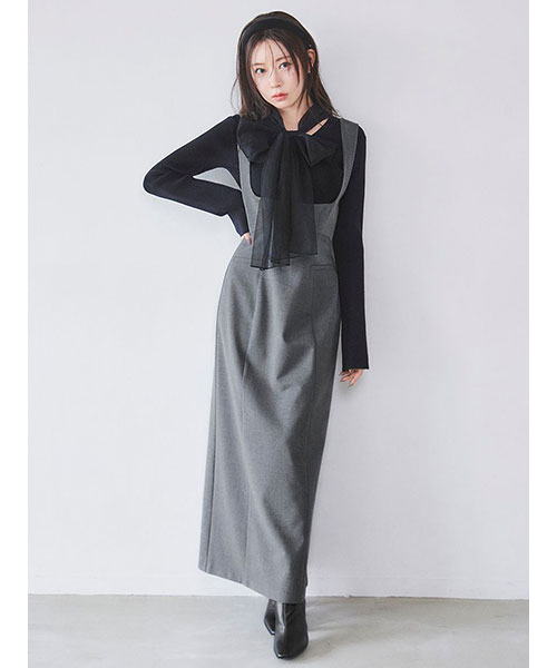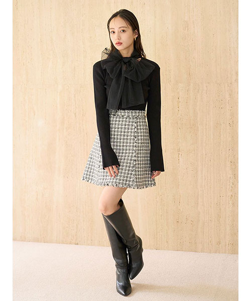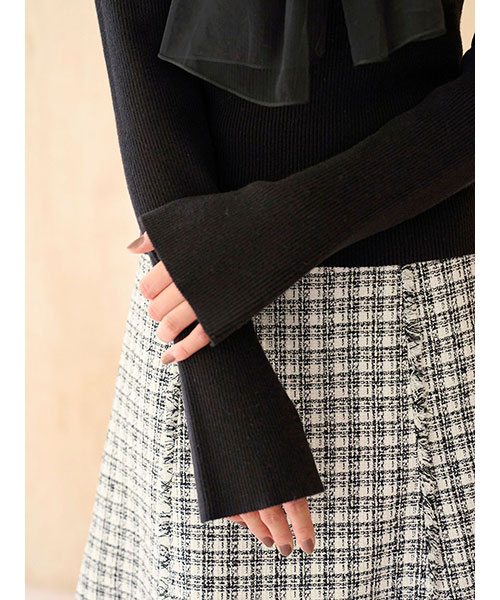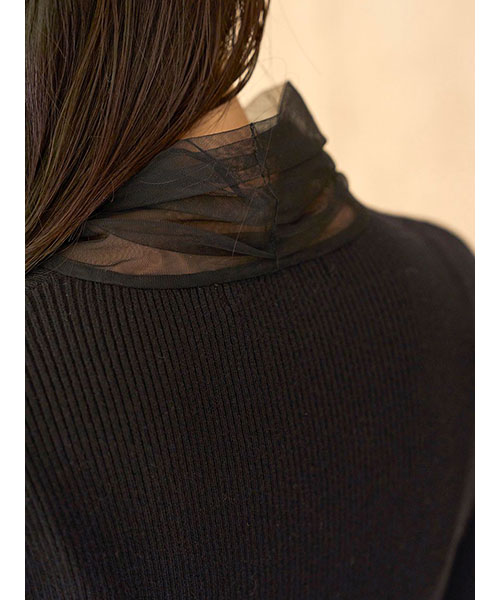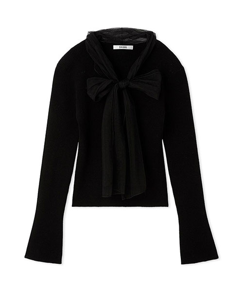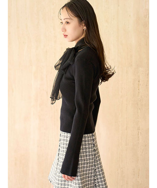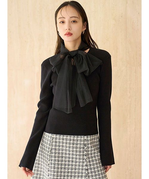 【ふんわりボウタイチュールリボンをドッキングした着回し力抜群なニットプルオーバー】【Design/Styling】