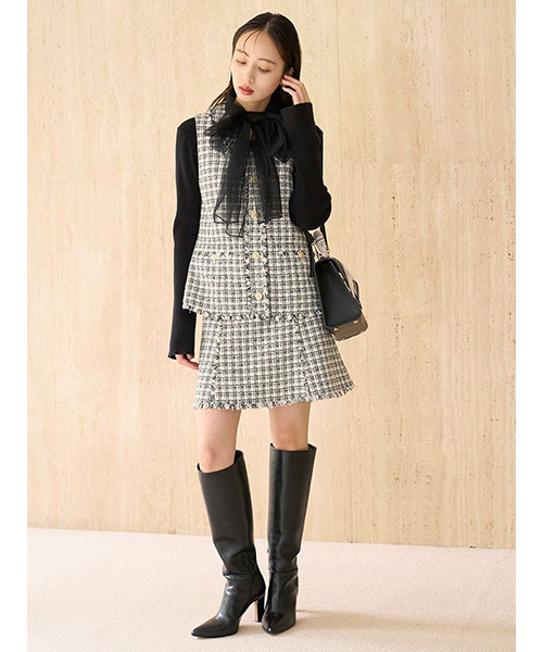 素材 | 本体:レーヨン38%、ポリエステル29%、アクリル27%、羊毛6% チュール部分:ナイロン100% |
