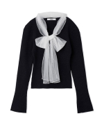 【ふんわりボウタイチュールリボンをドッキングした着回し力抜群なニットプルオーバー】【Design/Styling】