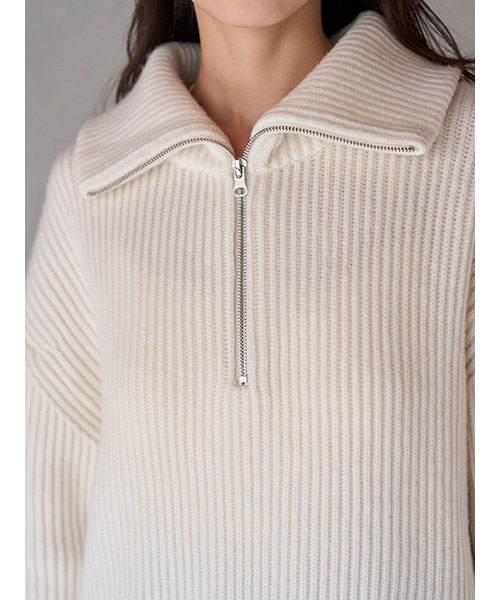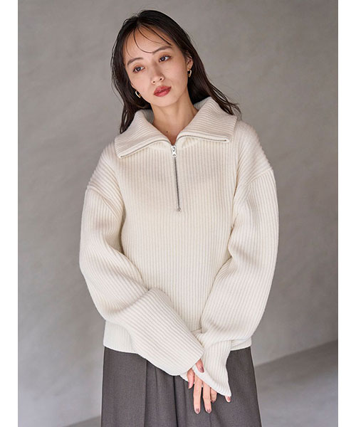 【ざっくりとしたフォルムで今季トレンドのハーフジップデザインを仕上げたニットプルオーバー】