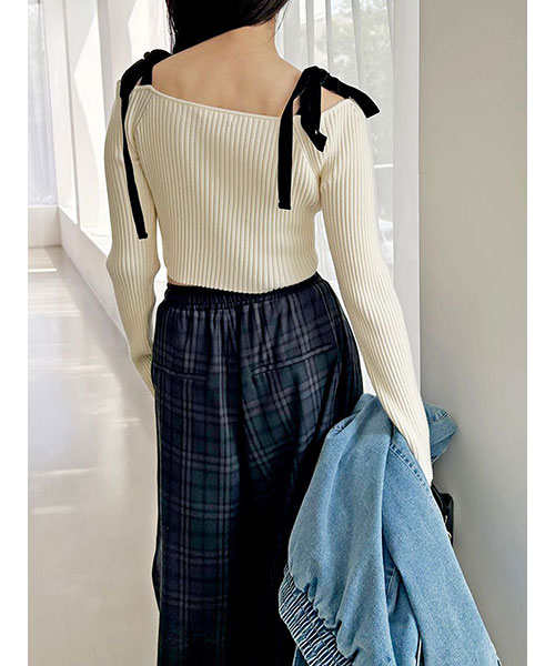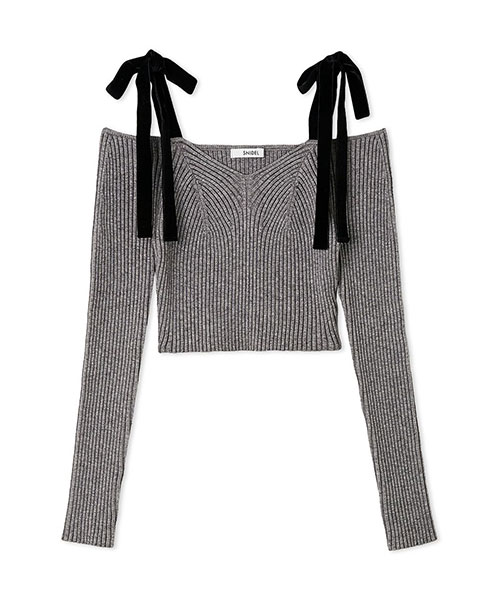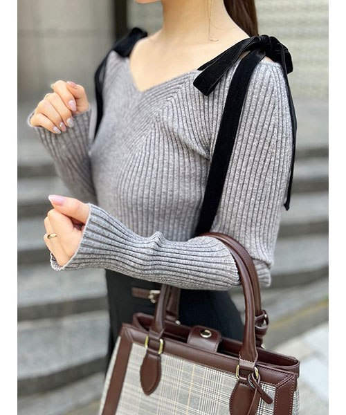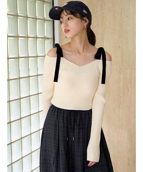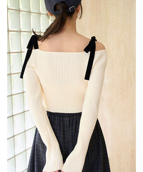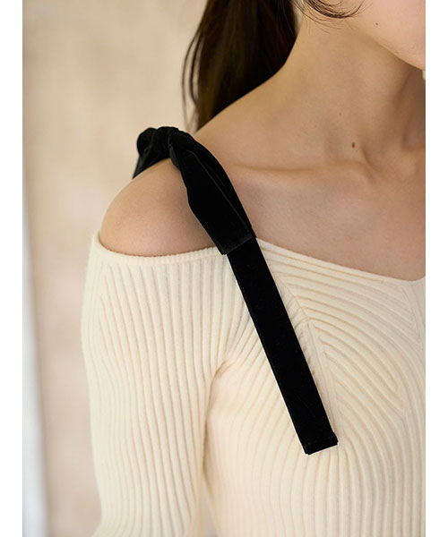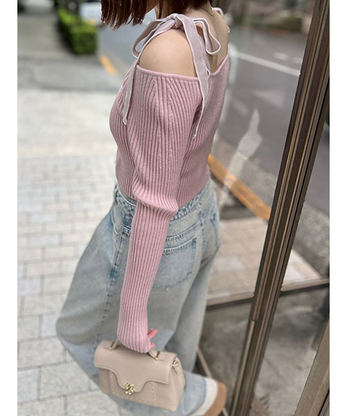 ショルダーリボンオフショルニットプルオーバー