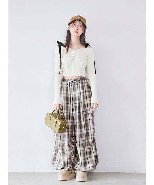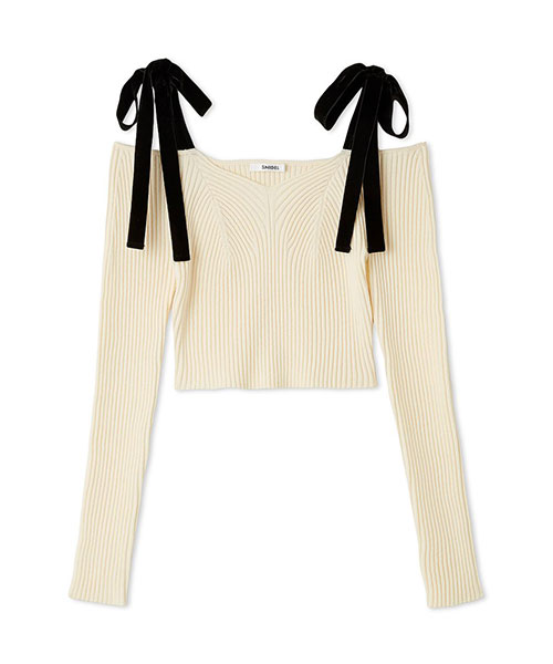 【立体的な編み地で美シルエットを叶えるショルダーリボンオフショルニット】【Design/Styling】