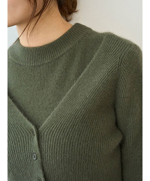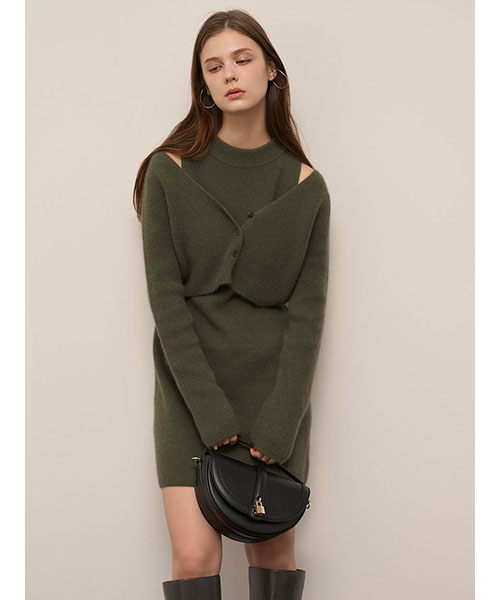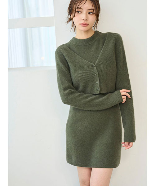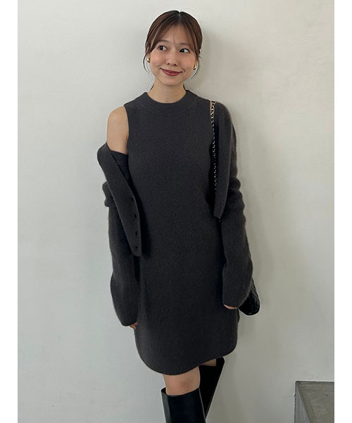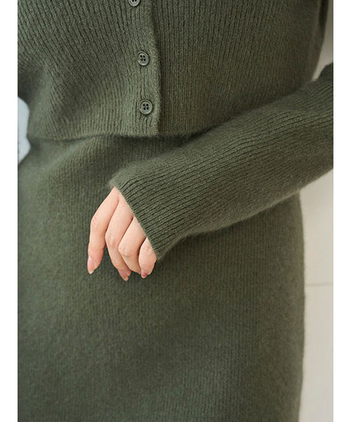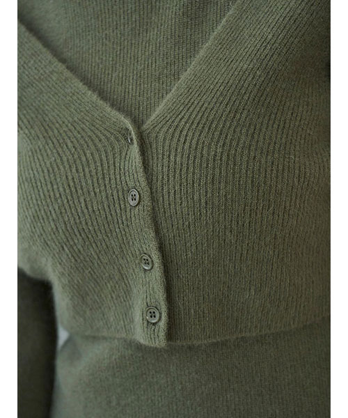 ラクーン30%、ウール30%を使用したふんわと肌触りの良い柔らかなニット生地でお作りした、シンプルなクロップド丈ショートカーディガンが登場。秋冬気分を高めるシックな色味で揃いました。肉厚で立体感のある畦編みで、少し太幅な身頃で程よくゆとりを出しつつ、レイヤードもしやすいクロップド丈でお作りしています。前後V開きで抜け感のあるデザインです。同色同素材でお作りしているノースリミニワンピース(SWNO255011)とのセットコーディネートもおすすめです。