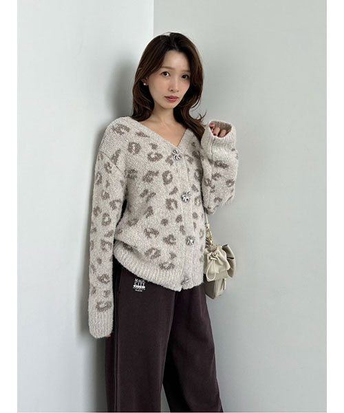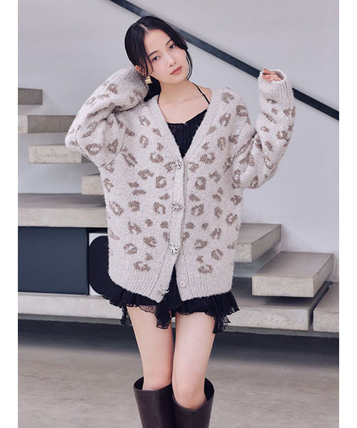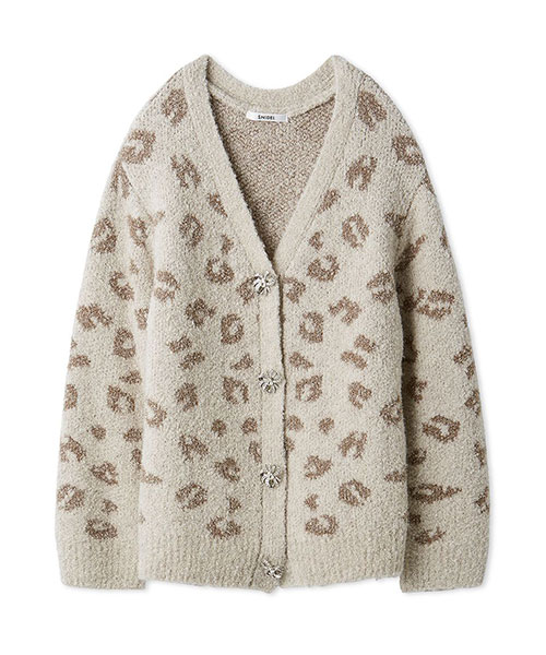 全体にゴールドのラメ糸を織り交ぜたシャギー感のある柔らかなアイボリー、全体にシルバーのラメ糸を織り交ぜた華やかなネイビー、レオパードはSNIDELオリジナルの大柄を使用し、グレージュベースにブラウンのモチーフ、全体にシルバーラメを織り交ぜた華やかで合わせやすいデザインです。