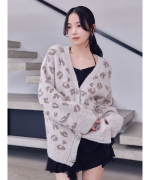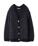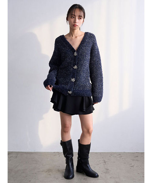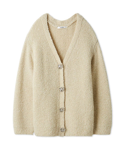 【オリジナルビジューボタンが華やかなお尻の隠れるミドル丈のふんわりキラキラカーディガン】【Design/Styling】