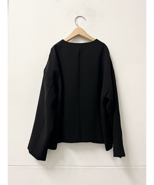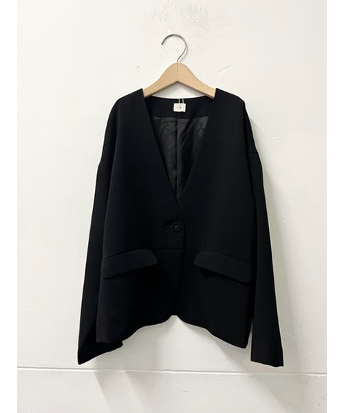 ゆとりを持たせつつ、コンパクトな丈感ですっきり見えるノーカラージャケット。