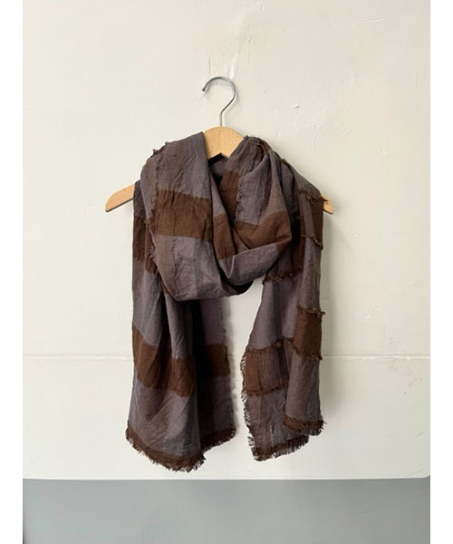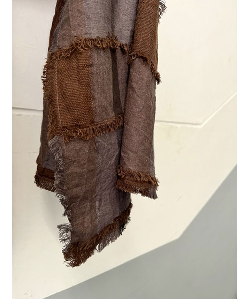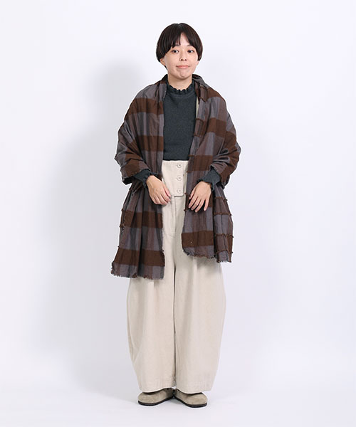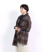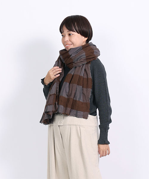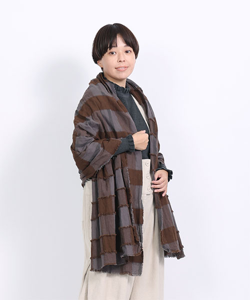 ブロックチェック柄カットジャガード生地で仕立てた大判ストール。「カットジャガード」という特殊な技法を施したtumuguのオリジナル生地で作りました。