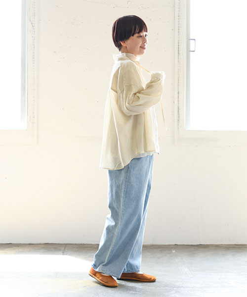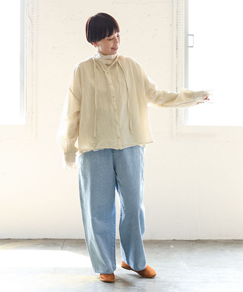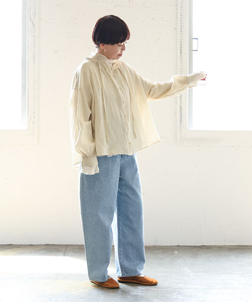 ナチュラルな風合いと立体的な表情を持つワッシャー加工が洗いざらしのような抜け感と上品さを演出する1枚です。