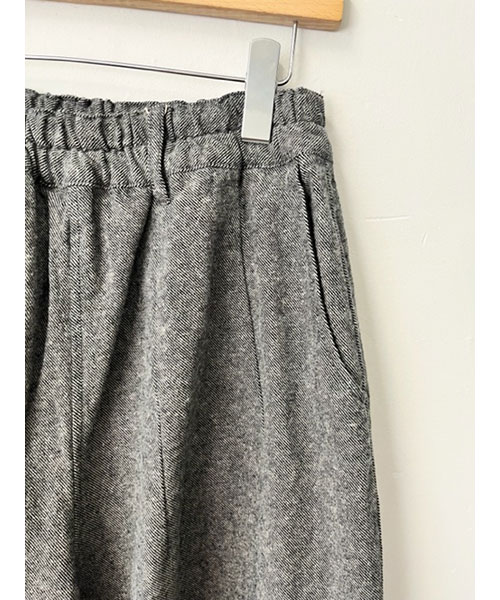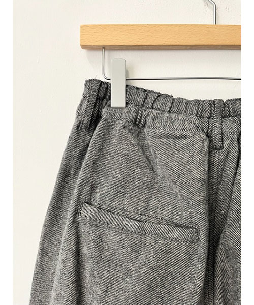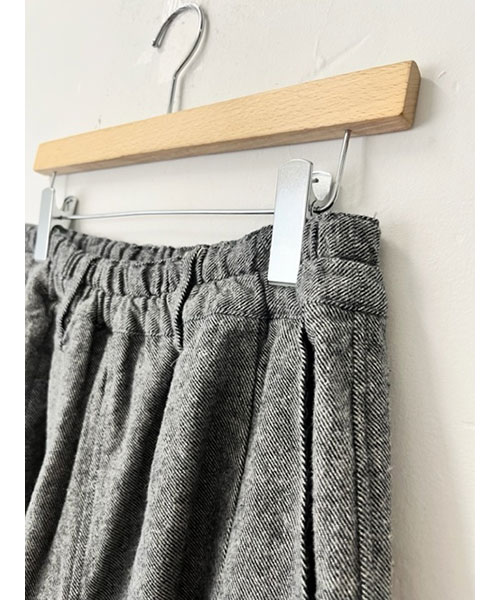 ウエスト周りに入ったタックが、腰回りにゆとりを持たせ、立体的なシルエットを作っています。