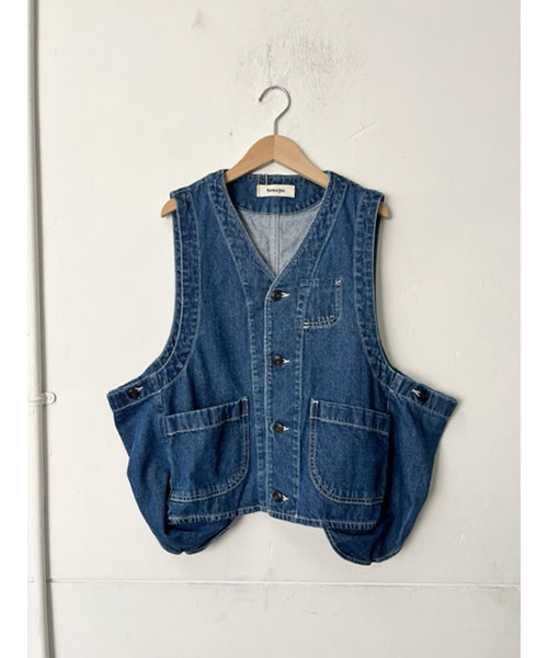 人気のギアベストをアップデートした、着回し自在なワークテイストベスト。程よい厚みの10ozデニム生地を使用しています。