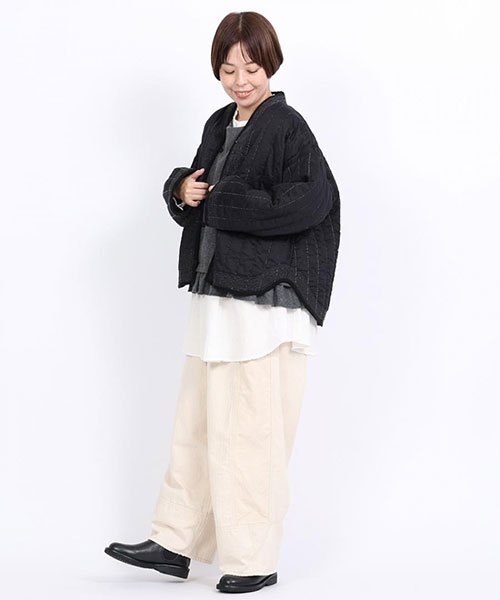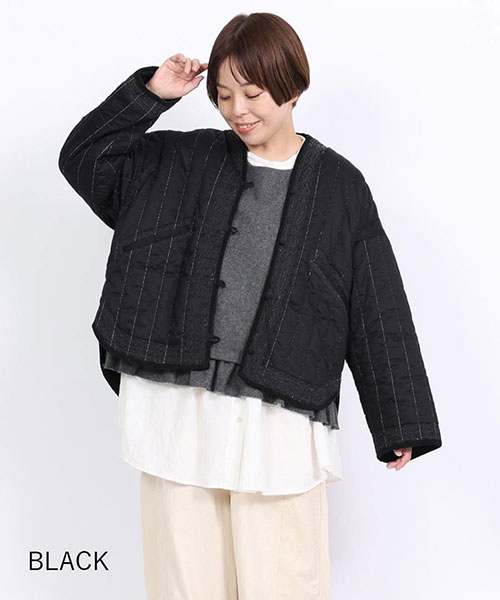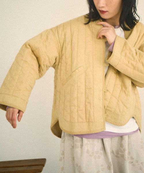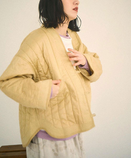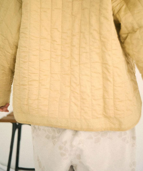 中綿入りのキルティング仕様で軽量ながらも暖かく、ライトアウターとして役立ちます。