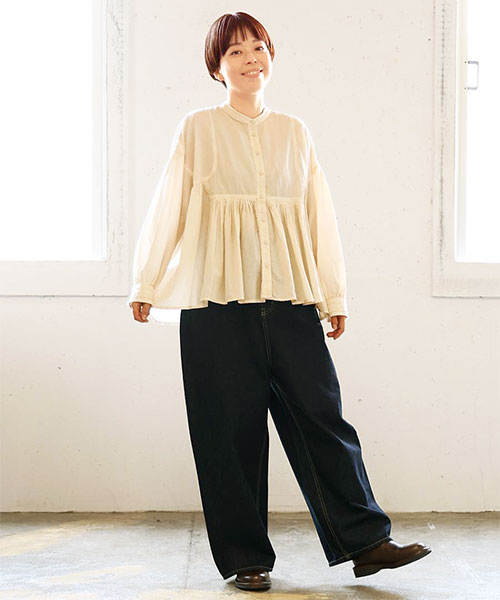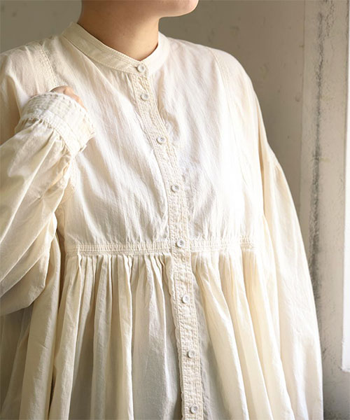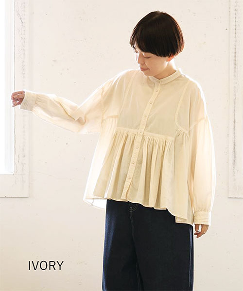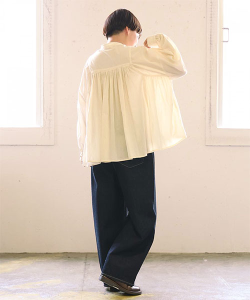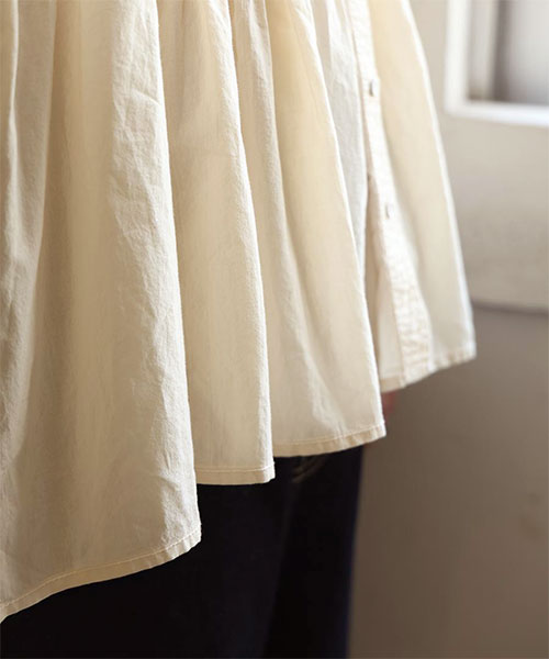 上質なコットンが日常に優しく寄り添う、ふわふわ質感が魅力のブラウス。薄手ながらも空気をはらみ、ふわっと膨らみのあるシルエットが魅力。