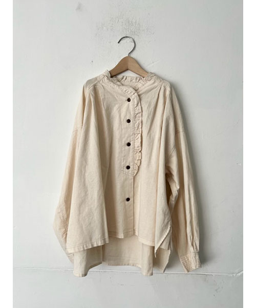コットンリネンキャンバス/4.5ozコットンリネンデニム フリルシャツ