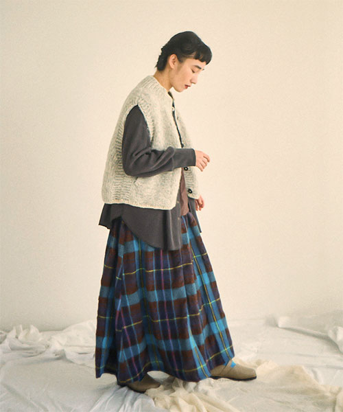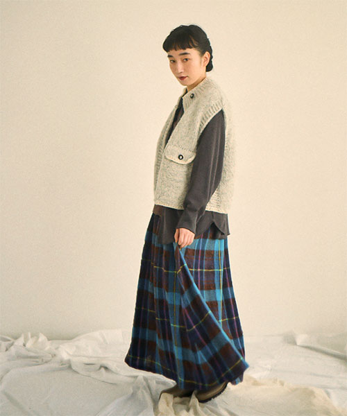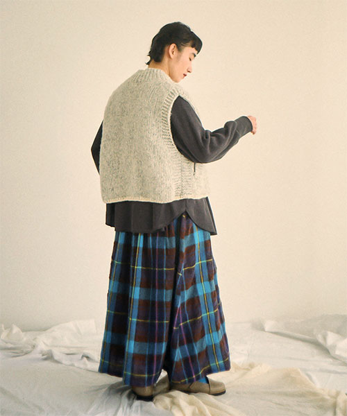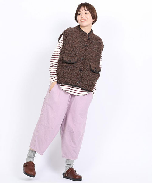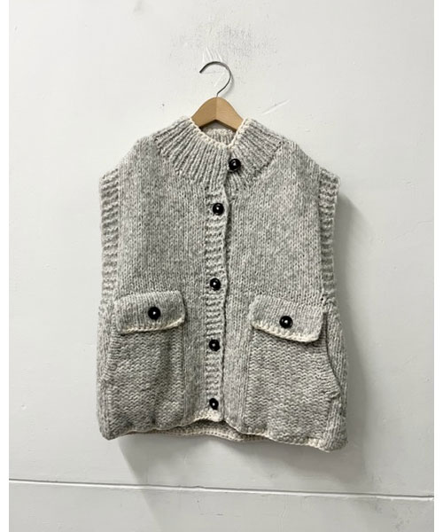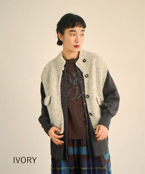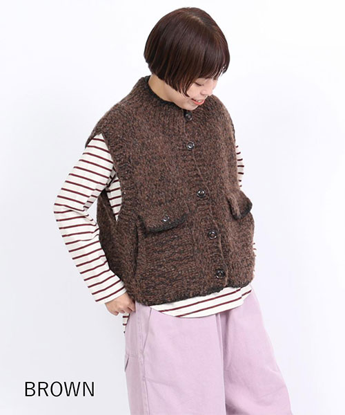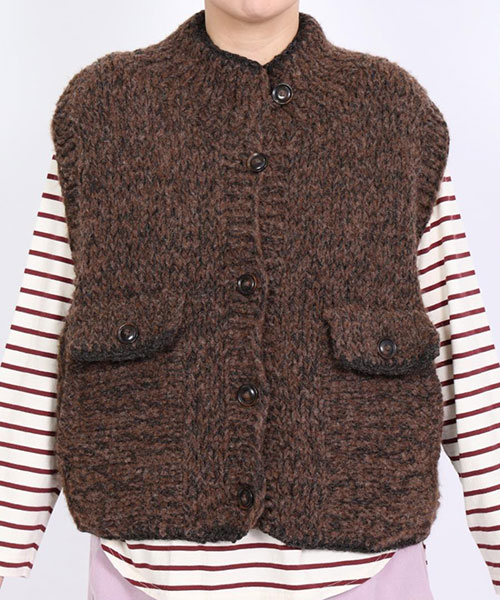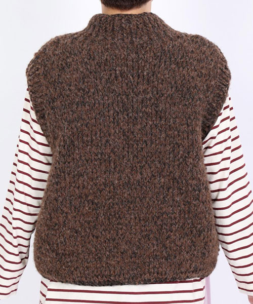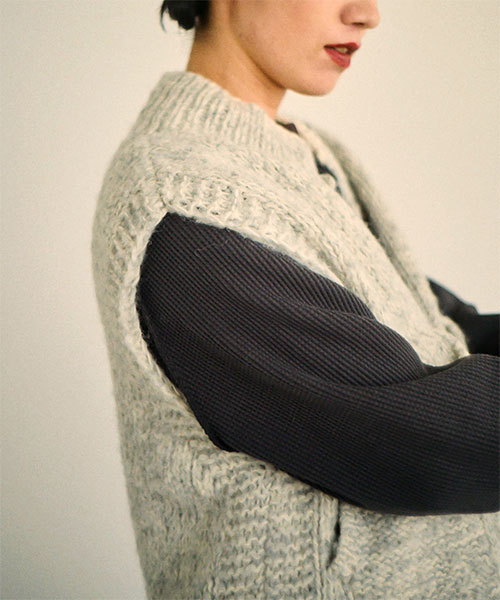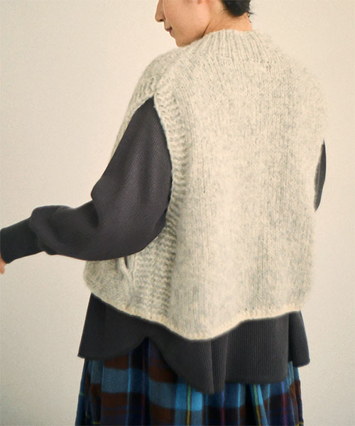 ボリューム感がありながらもふんわりと軽い、上質なニットベスト。アルパカウール混のロービング糸を贅沢に使用し、空気をたっぷり含んだふわっと軽い編み上がりです。