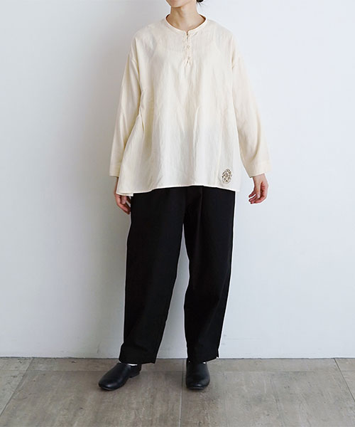 サイドの切り替えからふんわりと広がるシルエットが、女性らしい柔らかな印象を演出。軽やかで柔らかいコットン生地を使用しており、着心地も優しく快適です。