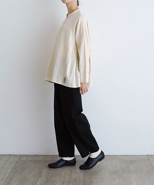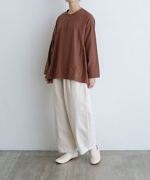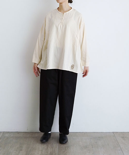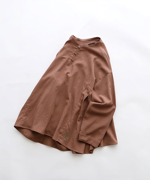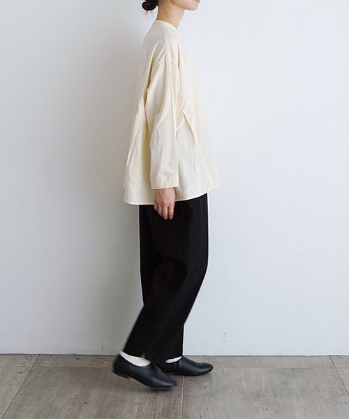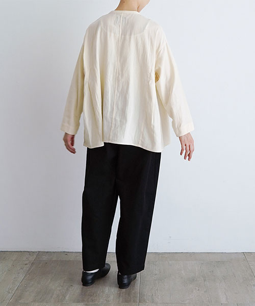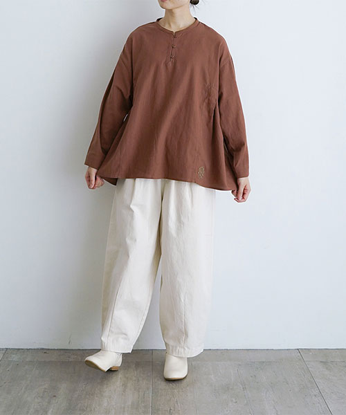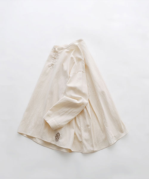 サイドの切り替えからふんわりと広がるシルエットが、女性らしい柔らかな印象を演出。軽やかで柔らかいコットン生地を使用しており、着心地も優しく快適です。
