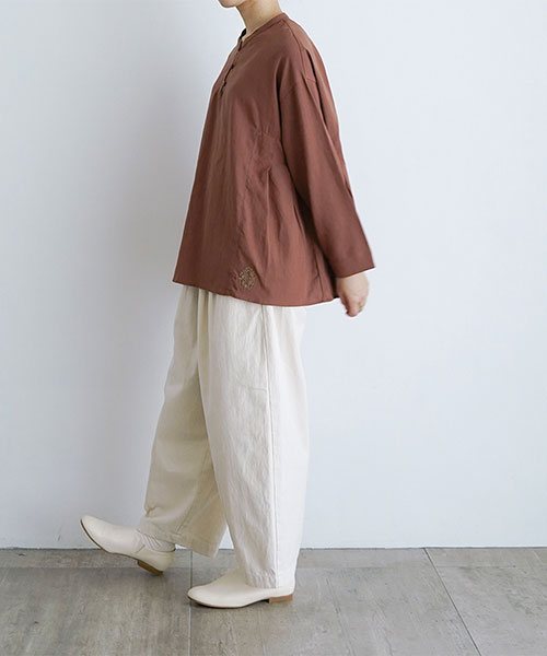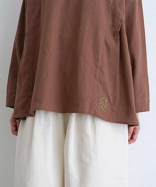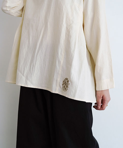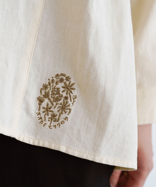 裾の刺繍がさりげないながらも、目を惹くアクセントに。