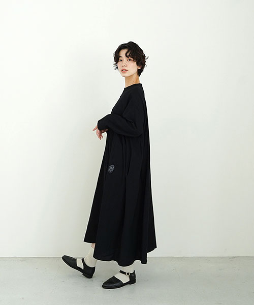 サイドのタックで動きに合わせてふんわりと揺れる、軽やかで優しい印象のワンピース。柔らかなコットン生地をたっぷりと使用し、一日中着用しても快適な着心地です。