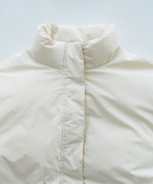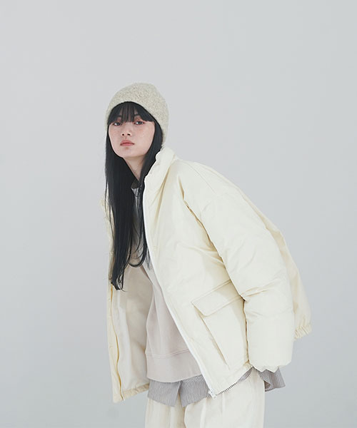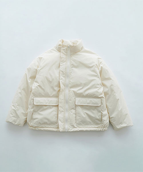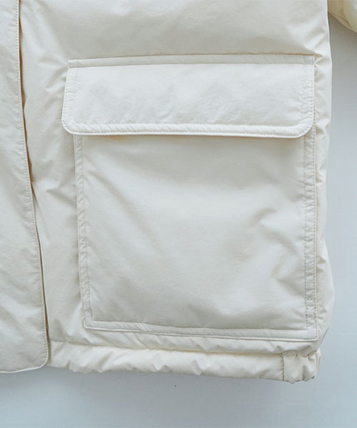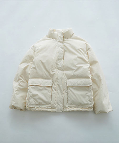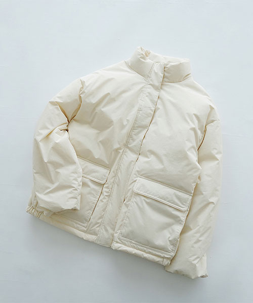 丸みのあるシルエットが特徴のスタンドカラーのダウンコート。左右の大きめのフラップポケットは、サイドからも手を入れられ機能性◎