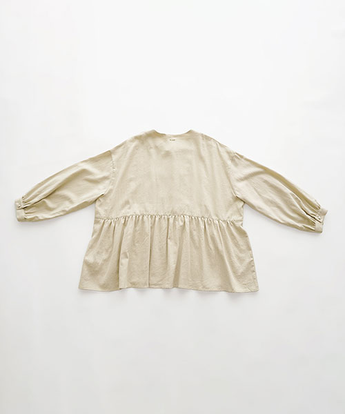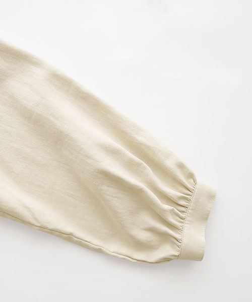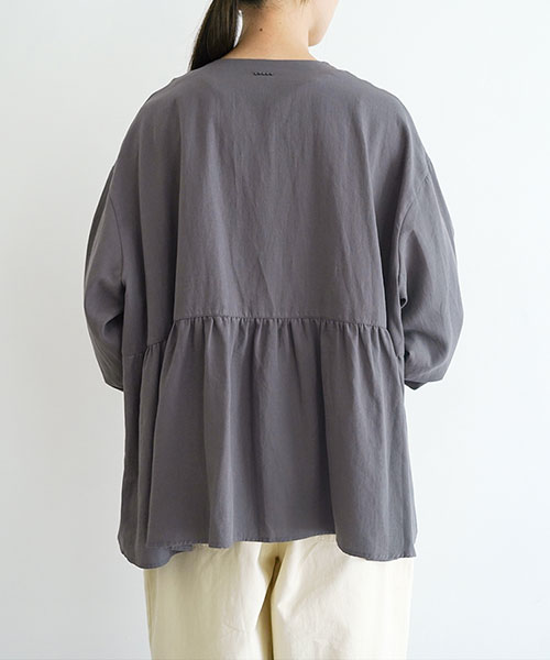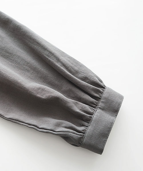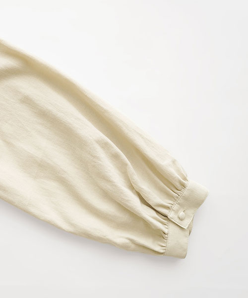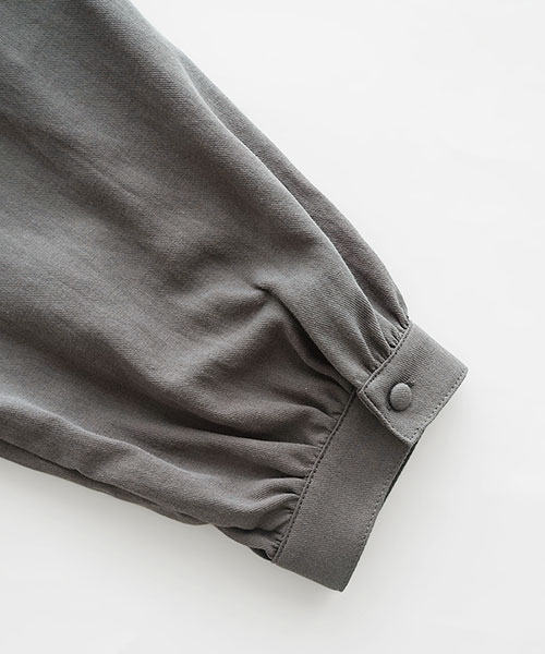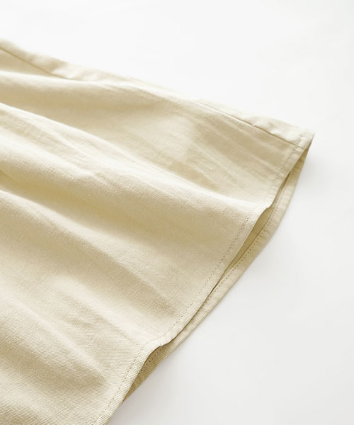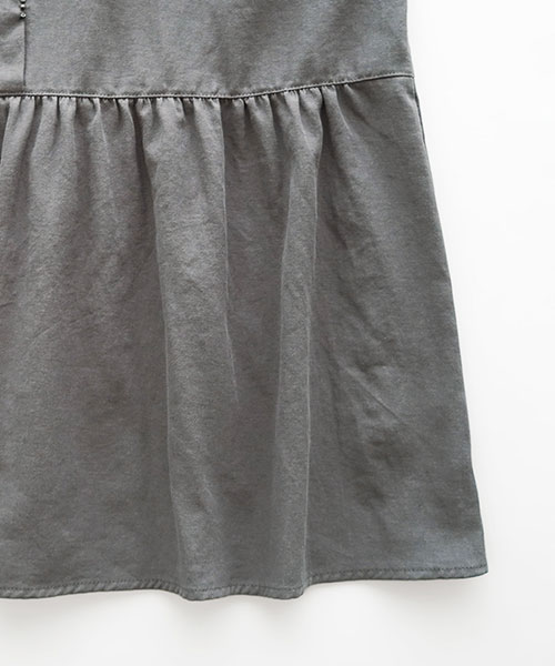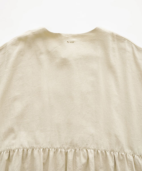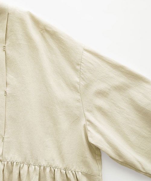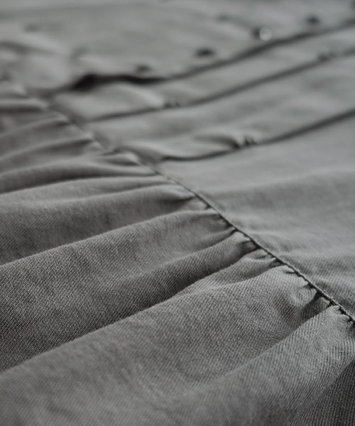 ウエストの切り替えからはたっぷりとギャザーが施されており、風にふんわりなびくシルエットに。