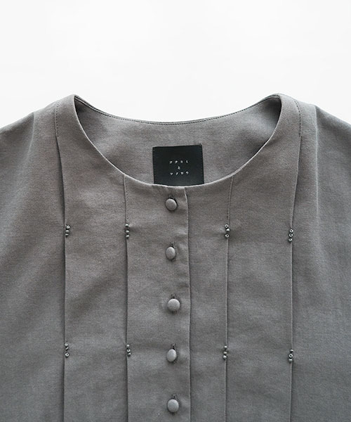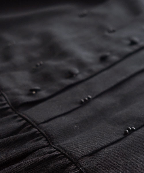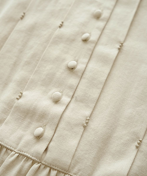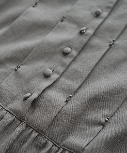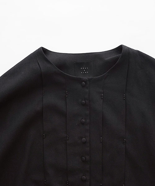首元の後ろ側にもあしらわれたビーズが、ふとした瞬間に目に留まるときめきを添えます。