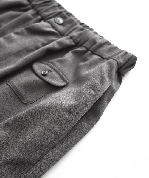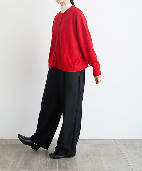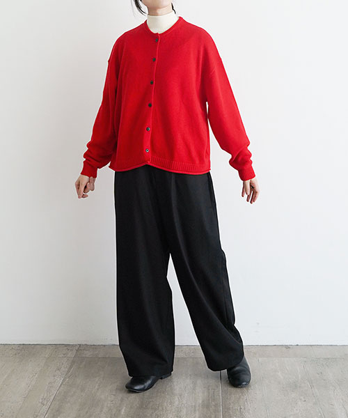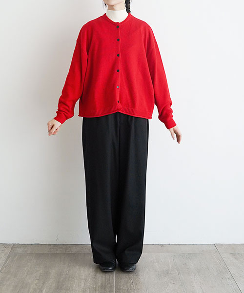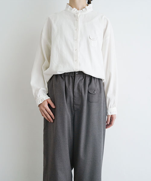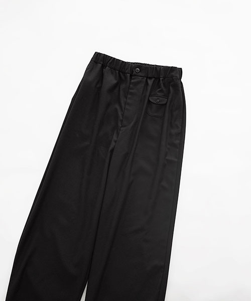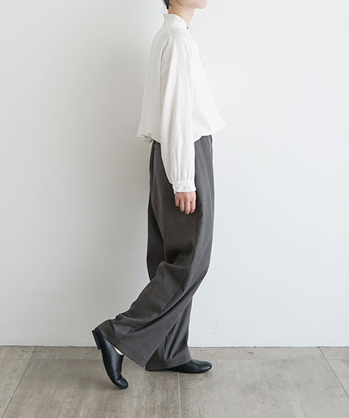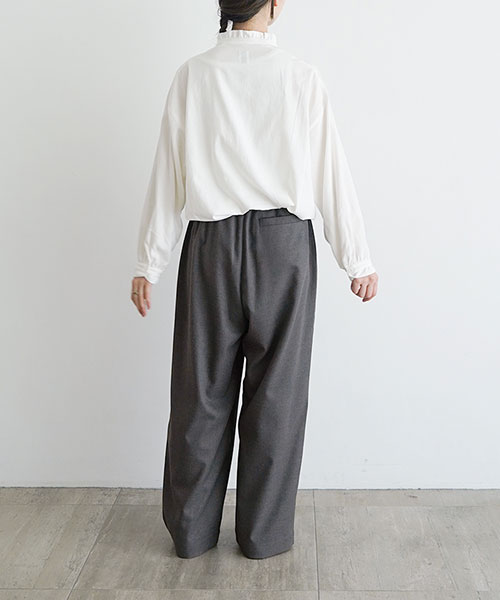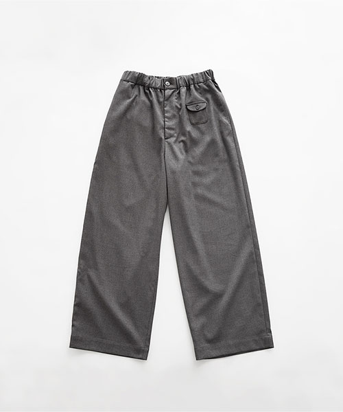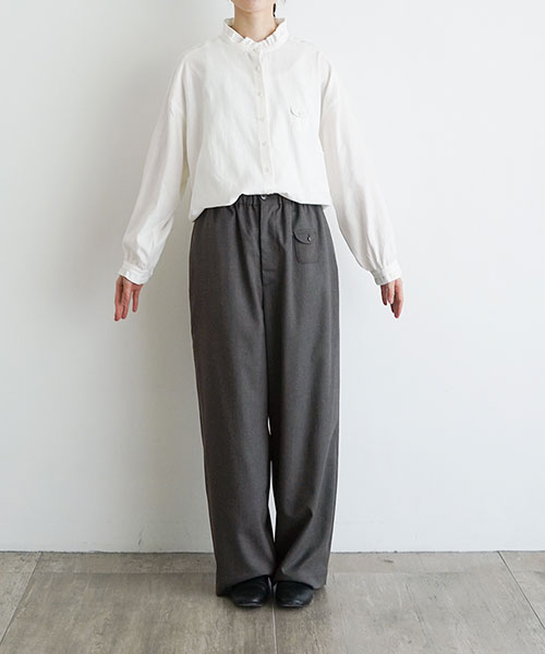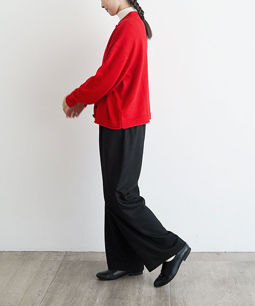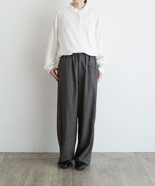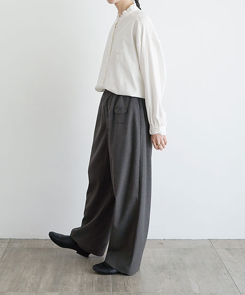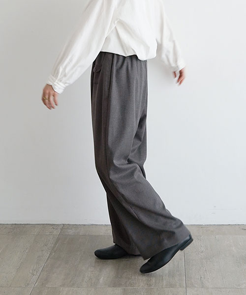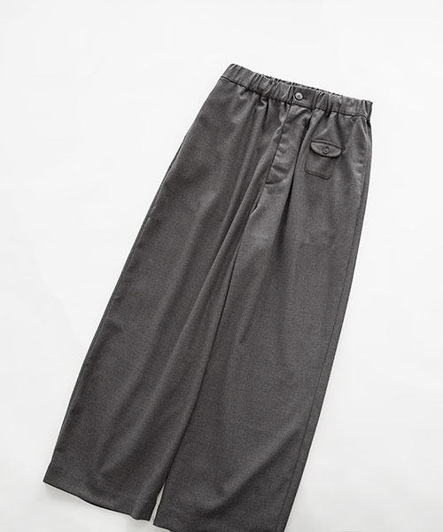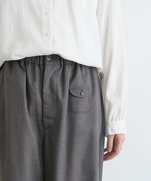 ほどよい厚みと落ち感のある、小さなポケット付きのストレートパンツ。歩くたびに生地がゆるやかに揺れ、シルエットを美しく見せてくれます。