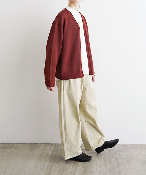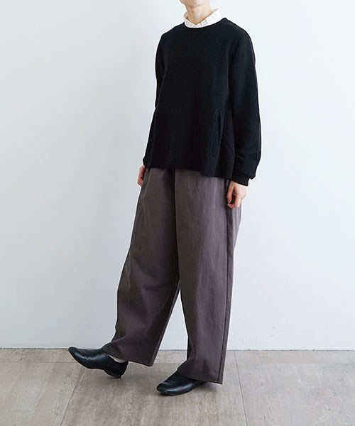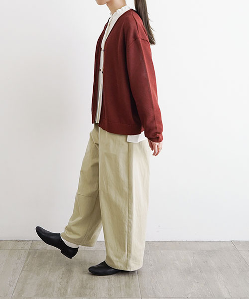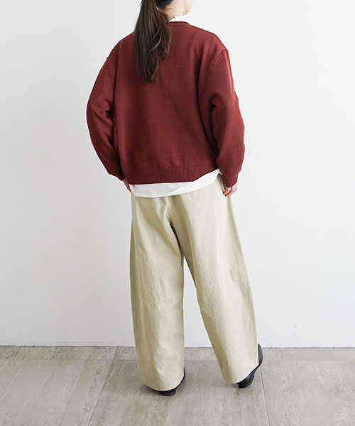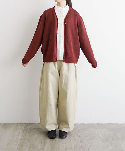 心地よい着用感の綿素材のパンツ。ゆとりのある広めの幅で、肌離れ良く快適にご着用いただけます。