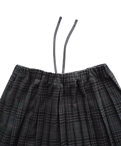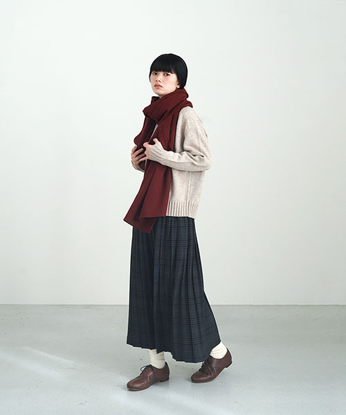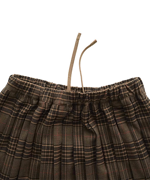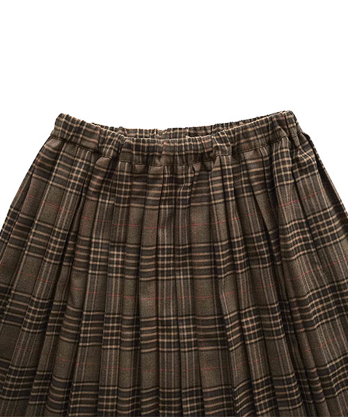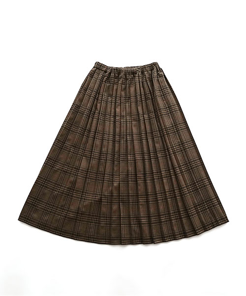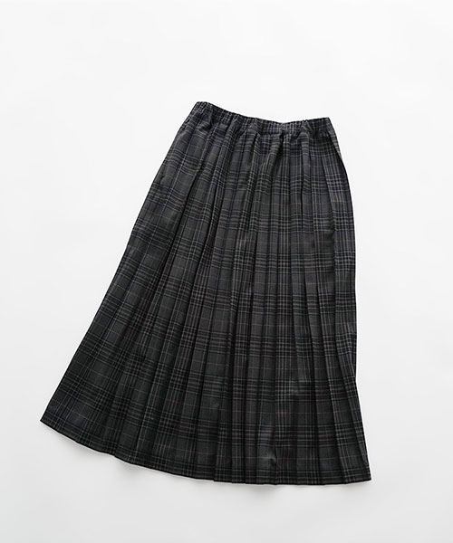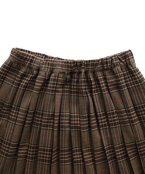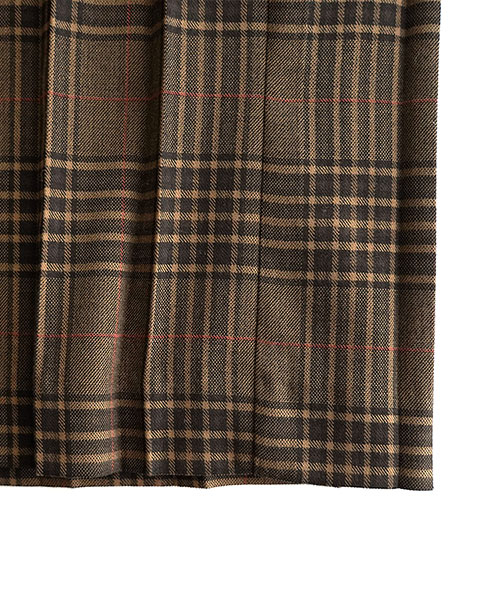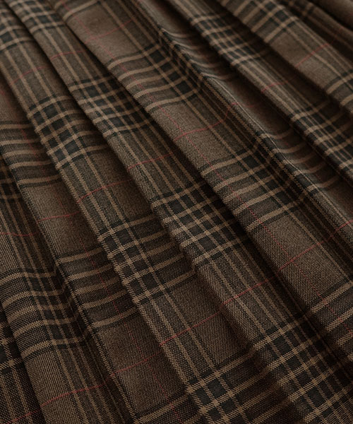 軽やかに揺れるロング丈のプリーツスカート。深みのあるチェック柄が、秋冬の装いにシックなアクセントをプラスします。