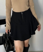 サイドはゴムですが、前後中心をベルトゴムなしにすることで、ウエストがすっきりと見えるデザインです。