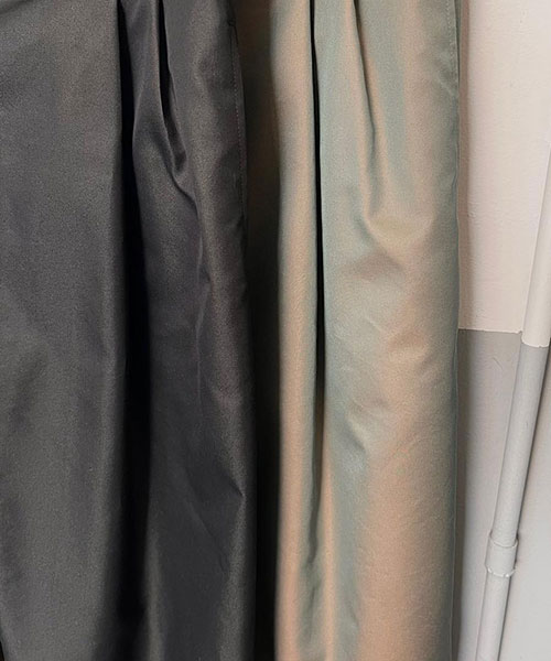陰影のある印象的な表面感と微光沢を持ち合わせたシャンブレーギャバジン生地を使用。ハリ・コシのある風合いに撥水機能もあり、