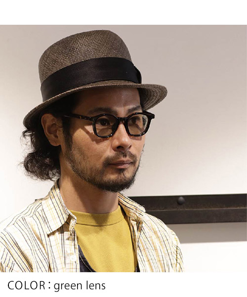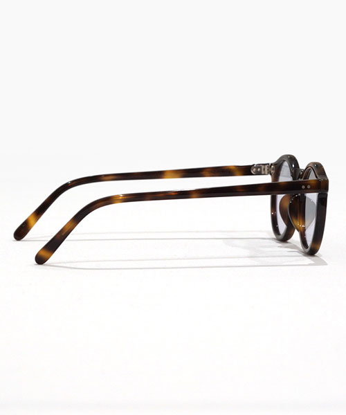 40年代のフレンチヴィンテージを再現。レンズシェイプは丸過ぎないラウンドドロップのような印象。テンプルへのラインも細身でスッキリとしたデザイン。モダンな雰囲気にも合いそうです。