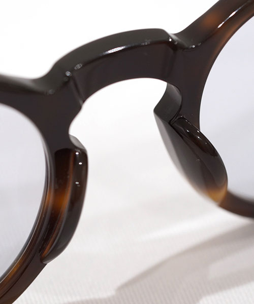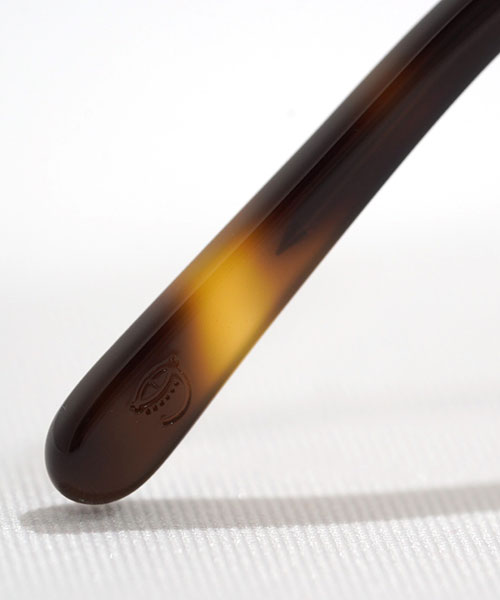 こちらのカラーはguepardチームが生地色の配合から手を加えセルロイドで見られる黄鼈甲を再現しています。