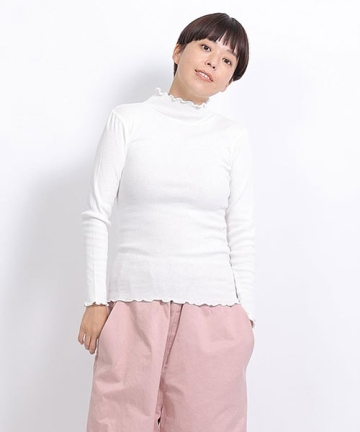 コットンリブニット ハイネック長袖