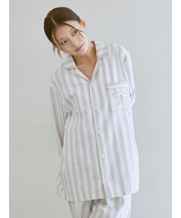 【PEANUTS】オリジナルアート レインボーストライプネルシャツ