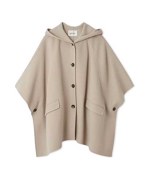 ポンチョ型が新鮮な、フードつきのコート。